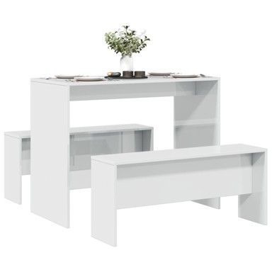 3-dijelni set blagovaonskog stola i klupa sjajni bijeli drveni