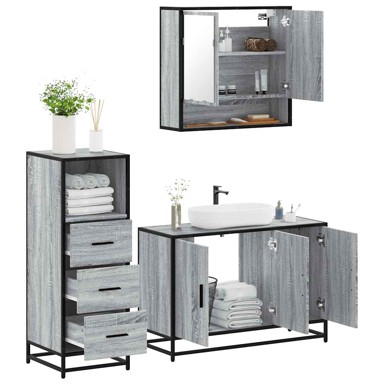 Set namještaja za kupaonicu, 3 kom, konstruirano drvo, siva sonoma