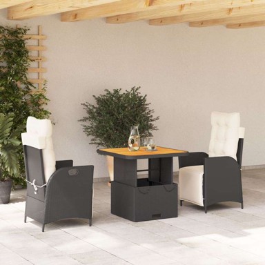 | Naziv proizvoda | 3 dijelni vrtni blagovaonski set s jastucima od poliratana crni, dužina stola 80 cm Sa naslonom za noge 2 |