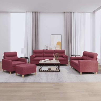 | Naziv proizvoda | 4-dijelni set sofa s jastucima crvena boja vina od tkanine, boja crnog vina |