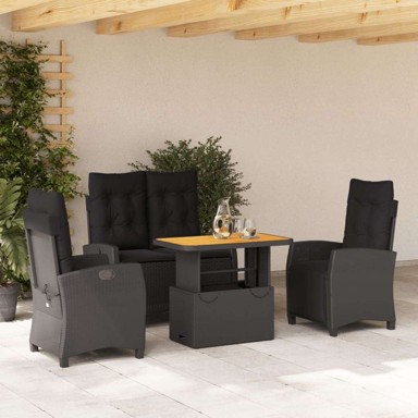 | Naziv proizvoda | 4 dijelni vrtni blagovaonski set od poliratana s jastucima crni, dužina stola 90 cm Sa naslonom za noge 4 |