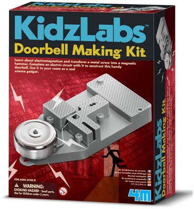 4M set za izradu zvona za vrata poučan je komplet koji uvodi djecu u osnove elektromagnetizma. Uz pomoć vodiča i dijelova može se sastaviti jednostavno ručno zvono te pretvoriti metalni vijak u magnetni čekić. Aktivnost potiče znatiželju, logičko razmišljanje i razumijevanje strujnog kruga.