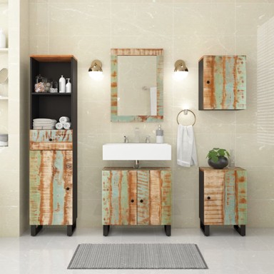 5-dijelni set kupaonskog namještaja masivno obnovljeno drvo