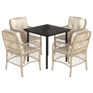 | Naziv proizvoda | 5 dijelni vrtni blagovaonski set od poliratana s jastucima bež, dužina stola 80 cm Okrugla noga 4 |