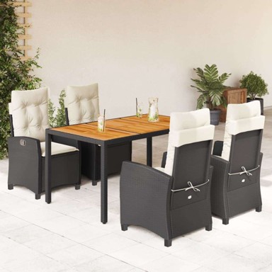 | Naziv proizvoda | 5 dijelni vrtni blagovaonski set s jastucima od poliratana crni, dužina stola 150 cm bez naslona za noge 4 |