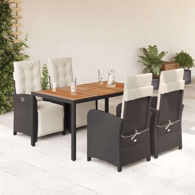 | Naziv proizvoda | 5 dijelni vrtni blagovaonski set s jastucima od poliratana crni, dužina stola 150 cm |