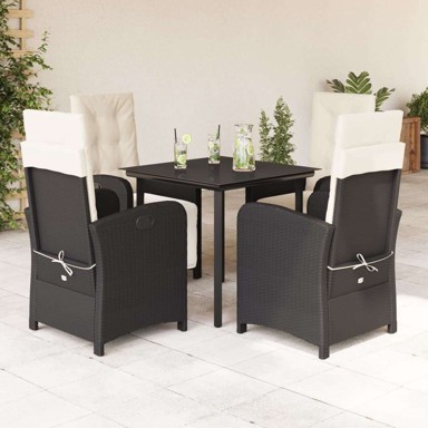 | Naziv proizvoda | 5 dijelni vrtni blagovaonski set s jastucima od poliratana crni, dužina stola 80 cm Sa naslonom za noge 4 |