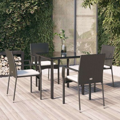 Naziv proizvoda5 dijelni vrtni blagovaonski set s jastucima od poliratana crni, dužina stola 80 cm