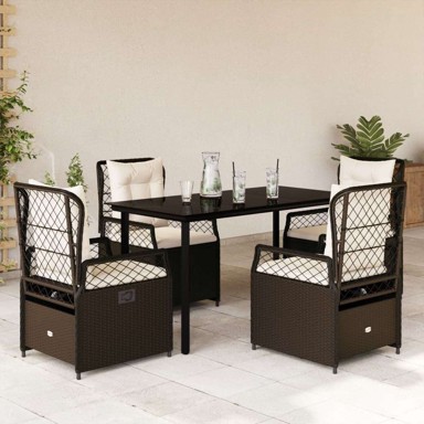 | Naziv proizvoda | 5 dijelni vrtni blagovaonski set s jastucima poliratan smeđi, 140 x 70 x 74 cm |