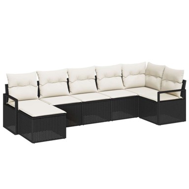 | Naziv proizvoda | 7-dijelna garnitura za vrt s jastučićima poliratan, crni |