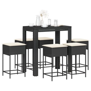 | Naziv proizvoda | 7-dijelni vrtni barski set od poliratana s jastucima crni |