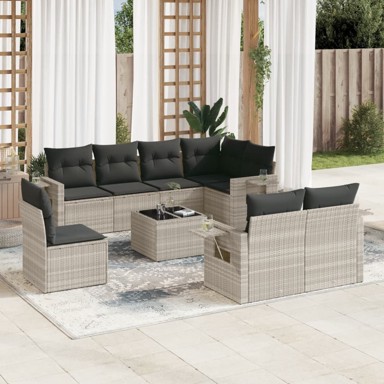 | Naziv proizvoda | 9-dijelni set vrtnih sofa od poliratana s jastucima svjetlosivi |