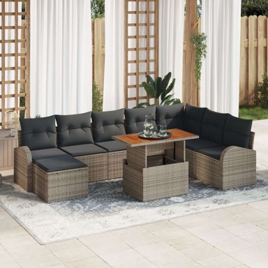 | Naziv proizvoda | 9-dijelni set za blagovanje u vrtu s jastučićima od poli ratana i akacije, siva |