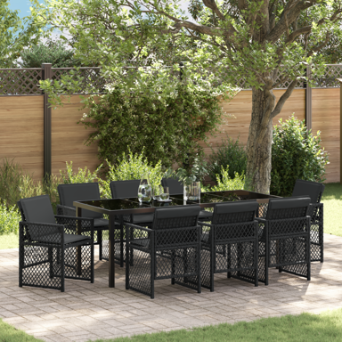 | Naziv proizvoda | 9-dijelni vrtni blagovaonski set s jastučićima od poliratana, crna |