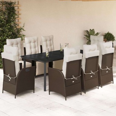 | Naziv proizvoda | 9 dijelni vrtni blagovaonski set s jastucima poliratan smeđi, dužina stola 200 cm Okrugla noga 8 |