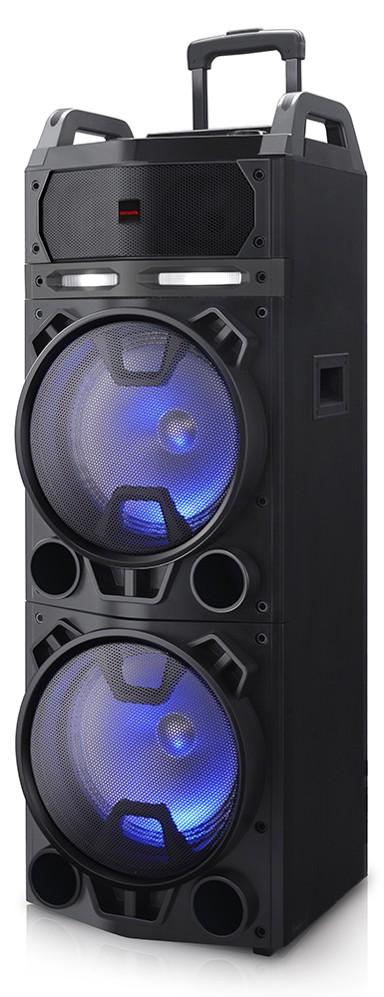 Karaoke sustav dolazi s dva bežična mikrofona i nudi izlaznu snagu od 800W, odnosno 100W RMS. Zvučnik ima 4-smjerni dizajn s dvostrukim 12" zvučnicima, 4" i 1" zvučnicima.