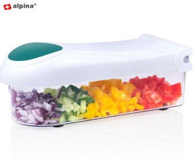 ALPINA ručna višenamjenska sjeckalica opremljena je s šest oštrica koje omogućuju brzo i ravnomjerno sjeckanje različitih sastojaka. Mehanički sustav rada pruža jednostavnu kontrolu teksture bez potrebe za električnim napajanjem.