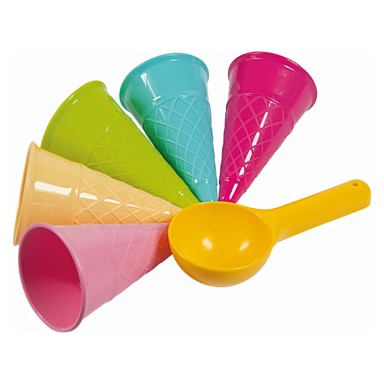 Zabavni set za igru u pijesku koji uključuje pet šarenih modela u obliku korneta i jednu žlicu za oblikovanje sladoleda, idealan je za kreativnu igru na plaži. Izrađen je od kvalitetne i sigurne plastike, lagan za nošenje i jednostavan za korištenje. Djeca mogu uživati u maštovitim kombinacijama i igri poslužitelja sladoleda, razvijajući pritom motoričke vještine i društvenu interakciju. Ovaj set je savršen za igru u pijesku, na plaži ili u vrtu, potiče igru uloga i donosi puno ljetne zabave. Preporučeno za djecu stariju od 18 mjeseci.