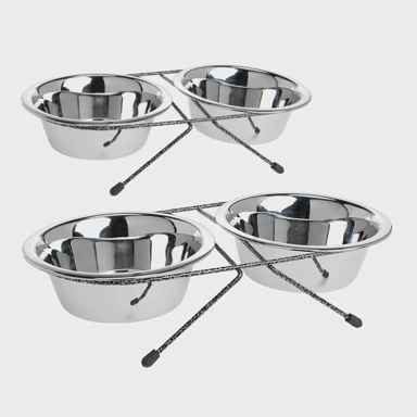 AniOne Posude na stalku metalne 0,7 l praktično je i funkcionalno rješenje za svakodnevno hranjenje i napajanje kućnih ljubimaca. Dvije odvojene zdjelice omoguć... Pročitaj više