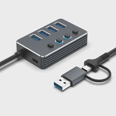 Asonic 2u1 HUB praktično rješenje za proširenje USB priključaka s mogućnošću napajanja putem USB-C adaptera. Nudi četiri USB 3.0 porta koji podržavaju standarde 1.0, 1.1, 2.0 i 3.0, omogućujući prijenos podataka velikom brzinom. Duljina kabela od 50 cm i kompaktan dizajn čine ga idealnim za putovanja i radni stol, dok DC 5V priključak osigurava stabilno napajanje perifernih uređaja. Pouzdan i jednostavan način za proširenje povezivosti svakog računala.