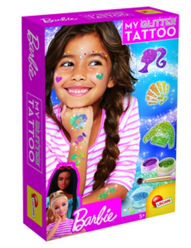 BARBIE set sjajnih tetovaža donosi mnoštvo šljokičavih tetovaža inspiriranih modnim i dječjim likovima. Samoljepljive naljepnice sigurne su za kožu, daju dodatni sjaj i omogućuju ukrašavanje tijela ili naglaske na modnim dodatcima.
