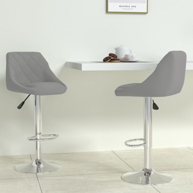 Uživajte u čaši vina, prigrizite nešto ili se jednostavno opustite dok sjedite na ovim barskim stolcima. Ove barske stolice presvučene su baršunom mekanim na dodir i pružaju vam najveću moguću udobnost pri sjedenju. Okvir od kromiranog čelika osigurava visoku čvrstoću, dok ugrađeni oslonac za noge daje dodatni užitak pri sjedenju. Zahvaljujući plinskom mehanizmu za podizanje, ovi barski stolci mogu se podesiti po visini i savršen su dodatak svakom funkcionalnom baru ili blagovaonici. Također se mogu okretati za 360 stupnjeva uz veliku fleksibilnost. - Boja: Svjetlosiva - Materijal: Baršun (100 % poliester), kromirani čelik - Dimenzije: 46 x 44 x (82 - 103) cm (Š x D x V) - Dubina sjedala: 38,5 cm - Visina naslona: 30,5 cm - Promjer baze: 38,5 cm - Okretanje za 360 stupnjeva - Plinski mehanizam za podizanje - S ugrađenim osloncem za noge - Podesiva visina: Da - Sastavljanje potrebno: Da - Isporuka sadrži: - 2 x barski stolac