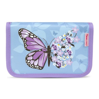Belmil pernica Purple Blue Butterfly kombinira ljubičaste i plave nijanse s motivom leptira. Izrađena od poliestera visoke kvalitete, pruža dugotrajnost i sadrži sve potrebne dodatke za školu, uz praktičnu organizaciju.