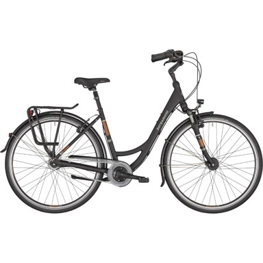 Gradski bicikl brenda Bergamont s donjom ramom pruža moderan i stabilan dizajn za svakodnevnu vožnju. Opremljen je gumama promjera 28 incha koje omogućuju sigurnu i udobnu vožnju po gradskim ulicama. S 7 brzina lako prilagođava tempo i uvjete na cesti, a elegantna crna boja daje mu profinjen i atraktivan izgled.