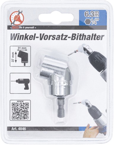 Kutni držač bita duljine 37 mm omogućuje pristup teško dostupnim mjestima i olakšava rad pod kutom. Prihvat od 1/4" kompatibilan je s velikim brojem alata. Kompaktna konstrukcija pruža stabilnost i precizno vođenje bitova. Praktičan je dodatak za svaki profesionalni i hobi alatni set.