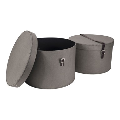 Organiziran i uredan dom - to je ono što vam kutije za pohranu Bigso Box of Sweden mogu postići. Okrugle kutije omogućuju vam da na praktičan način pohranite svoje kape, šalove ili druge bitne stvari. Elegantan dizajn nadopunjen je kožnim kopčama koje kutije čine funkcionalnim ukrasom za svaku prostoriju u vašem domu. Dimenzije kutija: Mala Ø35, 5, visina 23, 5 cm Velika Ø37, 5, visina 25, 5 cm