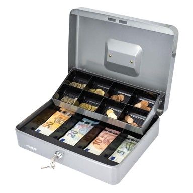 Blagajna za tržnice s pretincima za novčanice i kovanice zaključava se cilindarskom bravom s dva ključa te nudi organizaciju gotovine kroz ladicu s osam odjelja... Pročitaj više
