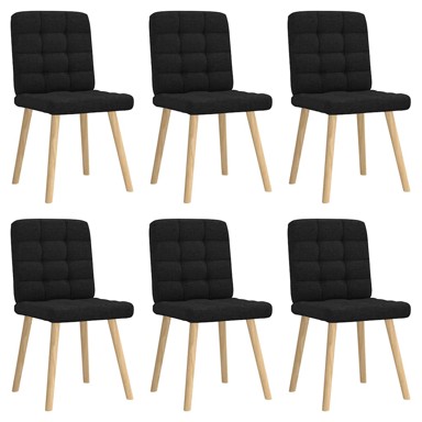Ove blagovaonske stolice kombiniraju jednostavnost i udobnost s elegantnim dizajnom, zbog čega privlače poglede u vašem prostoru za boravak. - Mekana i izdržljiva: Ova stolica ima iznimno gladak i udoban poliester koji pruža umirujući i ugodan osjećaj na koži. - Robustan i stabilan okvir: Stolica za večeru je poduprta metalom i drvetom, što daje dodatnu izdržljivost i stabilnost. - Udobno iskustvo sjedenja: Sjedalo i naslon sjedala za blagovanje ispunjeni su debelom pjenom kako bi vam bilo udobno. - Široke primjene: Stolica se može koristiti u blagovaonici, dnevnoj sobi, gostinjskoj sobi i tako dalje prema vašim potrebama. - Boja: Crna - Materijal: Tkanina (100% poliester), šperploča, metal, puno gumeno drvo - Materijal punjenja: Pjena - Ukupne dimenzije: 45 x 54 x 86 cm (Š x D x V) - Veličina sjedala: 45 x 41,5 cm (Š x D) - Visina sjedala od tla: 47,5 cm - Visina naslona: 39,5 cm - Maksimalna nosivost (po sjedalu): 110 kg - Sastavljanje potrebno: Da - Isporuka sadrži: - 6 x blagovaonska stolica