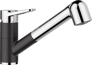 Kuhinjska slavina s tušem na izvlačenje u kombinaciji SILGRANIT™ izgleda i kroma u elegantnoj crnoj boji. Savršeno rješenje za male i kompaktne sudopere, pružajući maksim… Pročitaj više