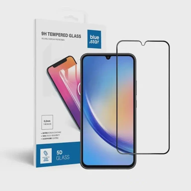 BLUE STAR 5D Kaljeno Staklo za Samsung Galaxy A34 5G nudi izuzetnu zaštitu za cijeli ekran telefona, uključujući krivulje zaslona. Zahvaljujući 5D tehnologiji, staklo savršeno prianja i sprječava nakupljanje prašine i prljavštine. S debljinom od samo 0,3 mm, gotovo je nevidljivo i ne utječe na osjetljivost ekrana, omogućujući potpunu slobodu korištenja. Oleofobni premaz štiti zaslon od otisaka prstiju i prljavštine. Uz staklo dolaze potrebni alati za montažu, uključujući krpu za odmašćivanje, krpu za uklanjanje prašine i naljepnice za precizno pozicioniranje. Zaobljeni rubovi omogućuju sigurnu upotrebu.