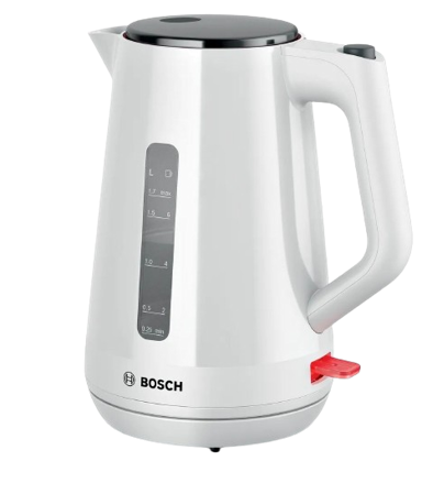 BOSCH Kuhalo vode TWK1M121 savršeno kombinira funkcionalnost, sigurnost i elegantan dizajn. S kapacitetom od 1.7 litara, bijele boje, donosi udobnost i praktičnost u vašu kuhinju. Ergonomski dizajn omogućuje jednostavno otvaranje poklopca samo dodirom gumba, dok pokazatelj za šalice pomaže uštedjeti energiju i vrijeme zagrijavanjem samo potrebne količine vode.