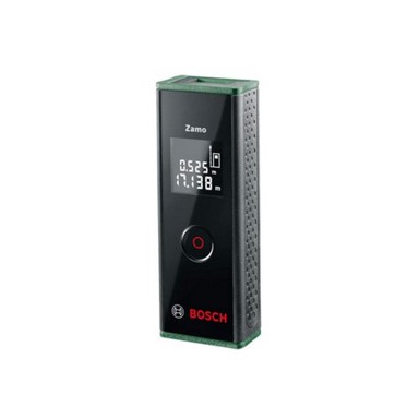 BOSCH mjerni instrument Zamo III laserski je daljinomjer koji omogućuje brzo, jednostavno i precizno mjerenje duljina, površina i udaljenosti do 20 metara. Zahvaljujući laserskoj tehnologiji, preciznost mjerenja doseže ±3 mm, a rezultati se prikazuju na velikom LCD zaslonu s pozadinskim osvjetljenjem. Funkcija kontinuiranog mjerenja automatski ažurira podatke svakih pola sekunde, što omogućuje točno pozicioniranje i lako podešavanje u radu.
