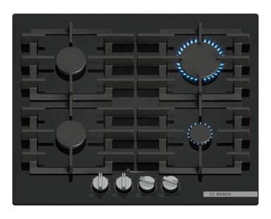 BOSCH PPP6A6I40 Serija 6 plinska ploča crne boje sadrži 4 plamenika s nosačima od lijevanog željeza. Ima paljenje na gumb, kontrolu sprijeda i rešetke perive u perilici p... Pročitaj više