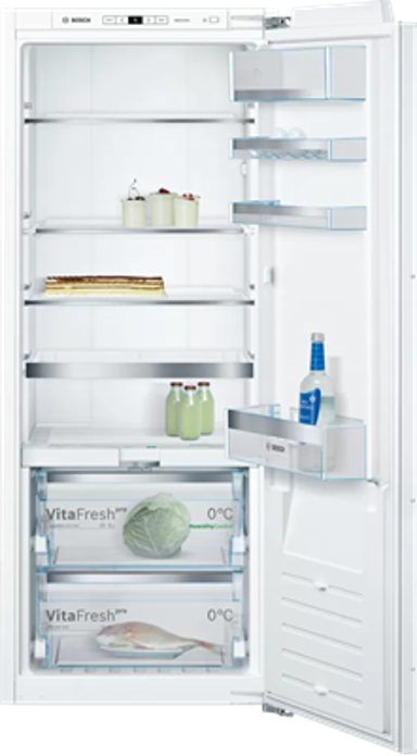 Bosch KIF51AFEO je ugradbeni hladnjak bez ledenice koji donosi napredne značajke za očuvanje svježine namirnica i praktičnost u organizaciji prostora. Jedna od ključnih značajki je ladicom VitaFresh Pro 0°C koja omogućuje izuzetno učinkovito hlađenje i čuva svježinu namirnica do tri puta duže. Ova tehnologija održava optimalnu temperaturu od 0°C i optimalnu vlažnost zraka, čime se produljuje rok trajanja hrane.