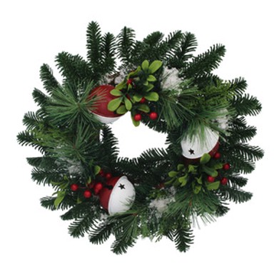 Božićni vijenac s crveno bijelim ukrasima i bobicama - 37 x 8 x 37 cm