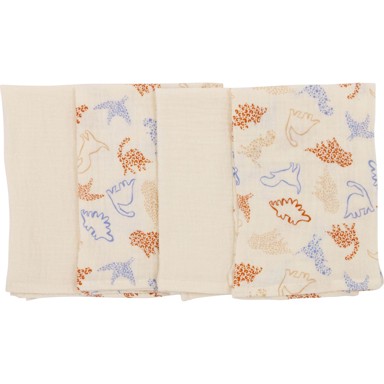 Muslin krpice s bež motivima životinjica izrađene su od mekanog i prozračnog materijala koji smanjuje rizik od iritacija. Dvoslojna struktura tkanine omogućuje dobro upijanje i nježan kontakt s kožom. Dimenzije 40×40 cm pružaju jednostavnu primjenu u svakodnevnim aktivnostima. Brzo sušenje olakšava održavanje i čini krpice praktičnima za putovanja. Paket s četiri komada osigurava praktičnu zalihu.