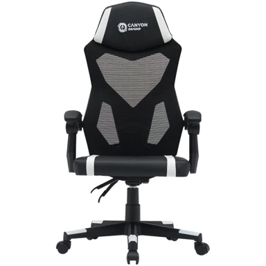 CANYON Gaming stolica FLOW MCH01, crno-bijela je moderni gaming stolac s ergonomskim dizajnom, prilagodljivim naslonima i mrežastim naslonom za leđa koji pruža optimalnu ventilaciju.