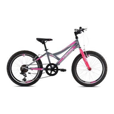MTB bicikl brenda Capriolo s donjom ramom dizajniran je za pouzdane i dinamične vožnje po zahtjevnim terenima. Gume promjera 20 incha pružaju izvrsnu kontrolu i stabilnost na neravnim stazama. Sa 6 brzina prilagođava se različitim usponima i spustevima, dok sivo/roza boja daje biciklu robustan i sportski izgled.