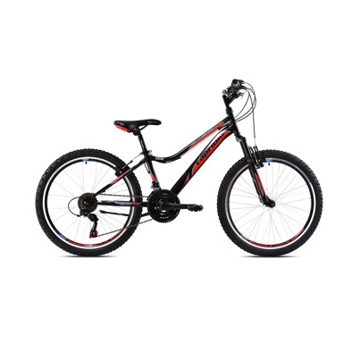 MTB bicikl brenda Capriolo s gornjom ramom dizajniran je za pouzdane i dinamične vožnje po zahtjevnim terenima. Gume promjera 24 incha pružaju izvrsnu kontrolu i stabilnost na neravnim stazama. Sa 18 brzina prilagođava se različitim usponima i spustevima, dok crveno/crna boja daje biciklu robustan i sportski izgled.