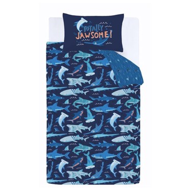 Dječja posteljina za krevet za jednu osobu 135x200 cm Jawsome Shark plava – Catherine Lansfield pruža mekan i ugodan materijal za spavanje, dok motiv Jawsome Shark u plavoj boji unosi avanturistički duh i razigranost u dječju sobu.