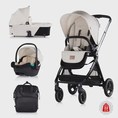 Dječja kolica Chipolino Elite Biscotta kombiniraju funkcionalnost, ergonomski dizajn i sigurnost za novorođenčad i djecu do 22 kg. Set uključuje sjedalo, košaru s madracem i navlakom, I-SIZE autosjedalicu, adaptere, ruksak, mrežu protiv komaraca i zimske navlake. Sjedalo se može postaviti u oba smjera i naslon podešavati do potpuno ravnog položaja, a sigurnosni pojas u pet točaka s jastučićima osigurava maksimalnu zaštitu. Kolica imaju aluminijski okvir, ručku podesivu po visini, uklonjivi štitnik prednjeg branika, veliki baldahin s ventilacijom, podstavljenu navlaku za noge, veliku košaru za pohranu i brzo otpuštajuće kotače s ovjesom. Autosjedalica s 3-točkovnim Y pojasevima pruža udobnost i sigurnost tijekom putovanja, dok su kolica i košara proizvedeni prema standardima EN1888-1, EN1888-2 i EN1466 te ECE R129/03 certificirani.