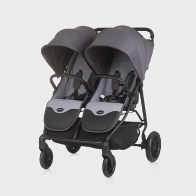 Dječja kolica za blizance Chipolino Top Stars Anthracite prikladna su za novorođenčad i djecu do 15 kg po sjedalu te nude izdržljiv klasični okvir i jednostavno sklapanje jednom rukom. Svako sjedalo ima više položaja naslona, odvojive štitnike prednjeg branika, pet točaka pojasa s jastučićima, podesive naslone za noge i velike nadstrešnice s dodatnim dijelom za zaštitu od sunca. Kolica sadrže dvije košare za pohranu, udobnu ručku presvučenu kvalitetnim materijalom, podstavljene navlake za noge i praktičnu torbu za mame s džepovima i podlogom za presvlačenje. Svi kotači imaju ovjes i brzo se otpuštaju, stražnji kotači imaju karičku kočnicu, a kolica su proizvedena prema europskom standardu EN1888-1.