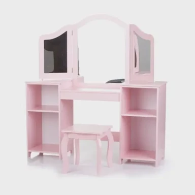 Dječji toaletni stolić s tabureom u ružičastoj boji nudi djevojčicama vlastiti kutak za oblikovanje frizura, šminkanje i uljepšavanje. Stolić ima trokrilno ogledalo, prak... Pročitaj više