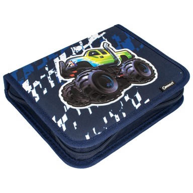CONNECT pernica Monster Race 1B 25 nudi uzbudljiv dizajn s motivima nemani i utrka, idealna za djecu koja uživaju u akciji i pustolovinama. Kompaktnih dimenzija 20x16x4 cm, opremljena je jednim patentnim zatvaračem i dvama preklopima, te sadrži 35 komada školskog pribora, uključujući flomastere u 12 boja, drvene boje u 12 nijansi, dvije grafitne olovke, tehničku olovku, kemijske olovke, šiljilo, gumicu, ravnalo, mine i rasporede sati.