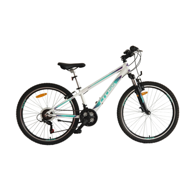 Cross Daisy 26" dolazi s aluminijskim okvirom, prednjom suspenzijom i Shimano 18-brzinskim prijenosom za udobnu vožnju po gradu i izvan njega. Opremljen je Trayal gumama i atraktivnim dizajnom, savršen je za djevojčice koje traže pouzdan bicikl za duže vožnje.