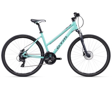 Trekking bicikl brenda CTM s donjom ramom idealan je za udobnu i dugotrajnu vožnju na različitim vrstama terena. Gume promjera 28 incha osiguravaju stabilnost i pouzdanost, dok 24brzina omogućuju jednostavno prilagođavanje različitim uvjetima na putu. Elegantna tirkizna boja dodatno naglašava praktičan i moderan izgled bicikla.